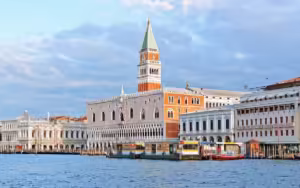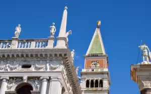 Explore the majestic Campanile, a symbol of Venice's rich heritage. Standing 99 meters tall, this Roman-Byzantine tower offers stunning views of Venice's Piazza and lagoons. Learn about its history and admire the famous five bells that once marked important events in the city.