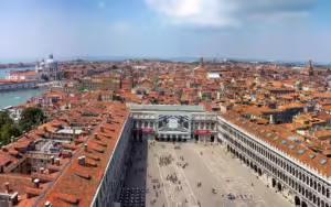 - Enjoy 360° views of the bustling St. Mark’s Square and the surrounding lagoons.
